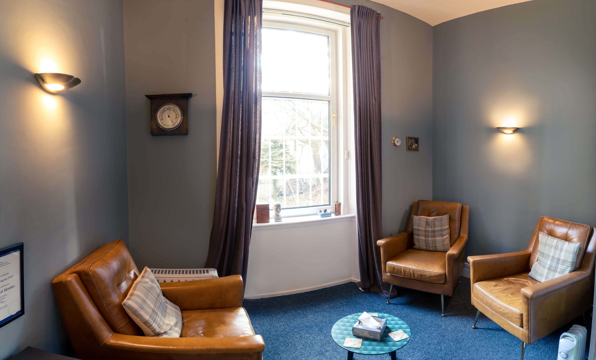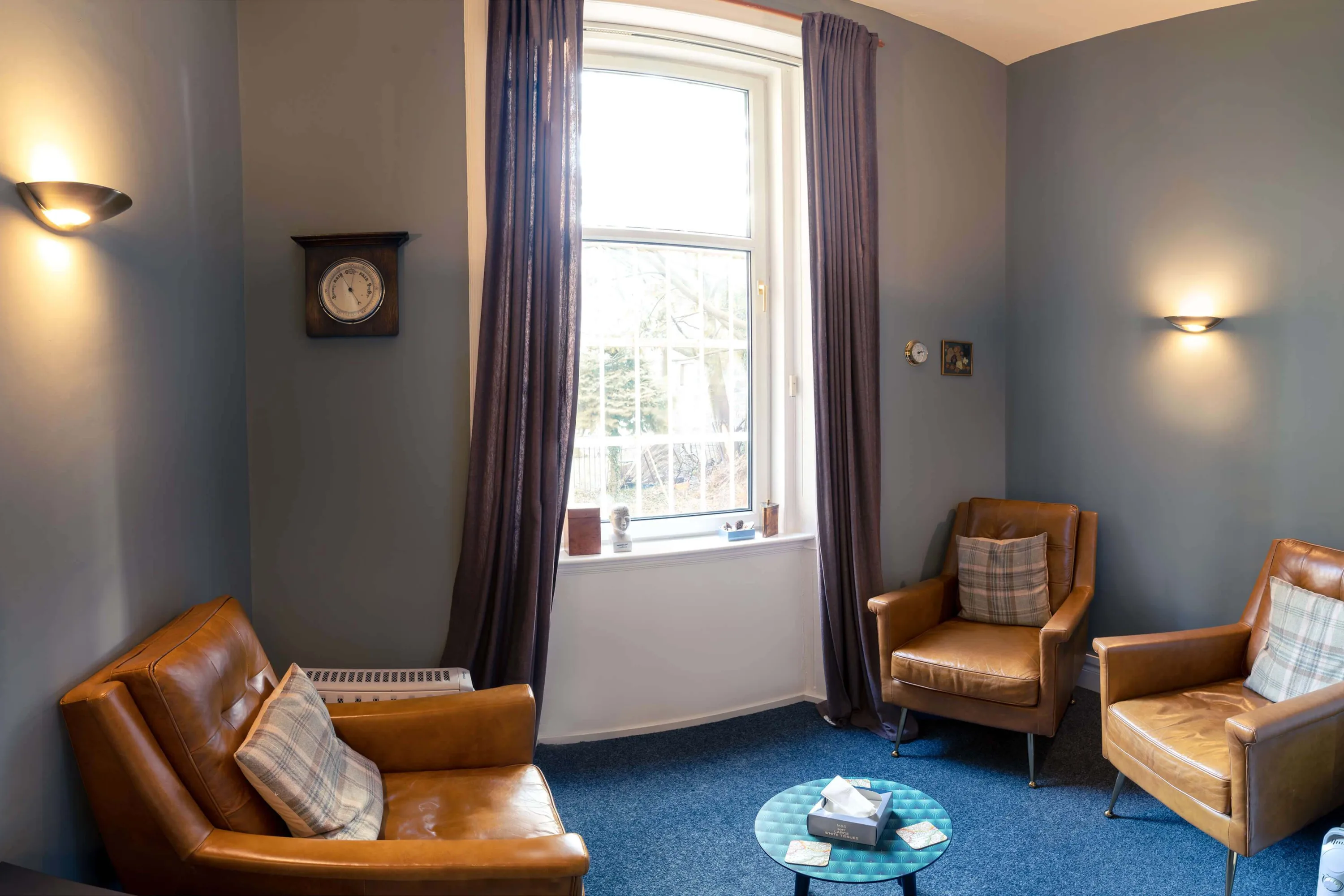 One of the consulting rooms is ideal for individual therapy or sessions involving two persons. The other two consulting rooms comfortably seat either one to one therapy, work with couples or family sessions.